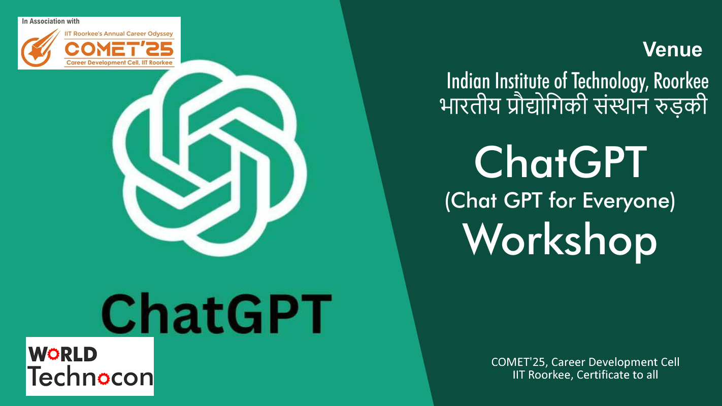 Unlock the potential of conversational AI at the 1-Day ChatGPT Workshop during COMET 2025 at IIT Roorkee. This engaging workshop is designed to introduce participants to the groundbreaking world of ChatGPT and its applications in creating intelligent, responsive chatbots. Aimed at a diverse audience, from tech enthusiasts to professionals and students keen on exploring AI, this event promises a thorough understanding of natural language processing (NLP), machine learning, and the mechanics behind generative AI models.